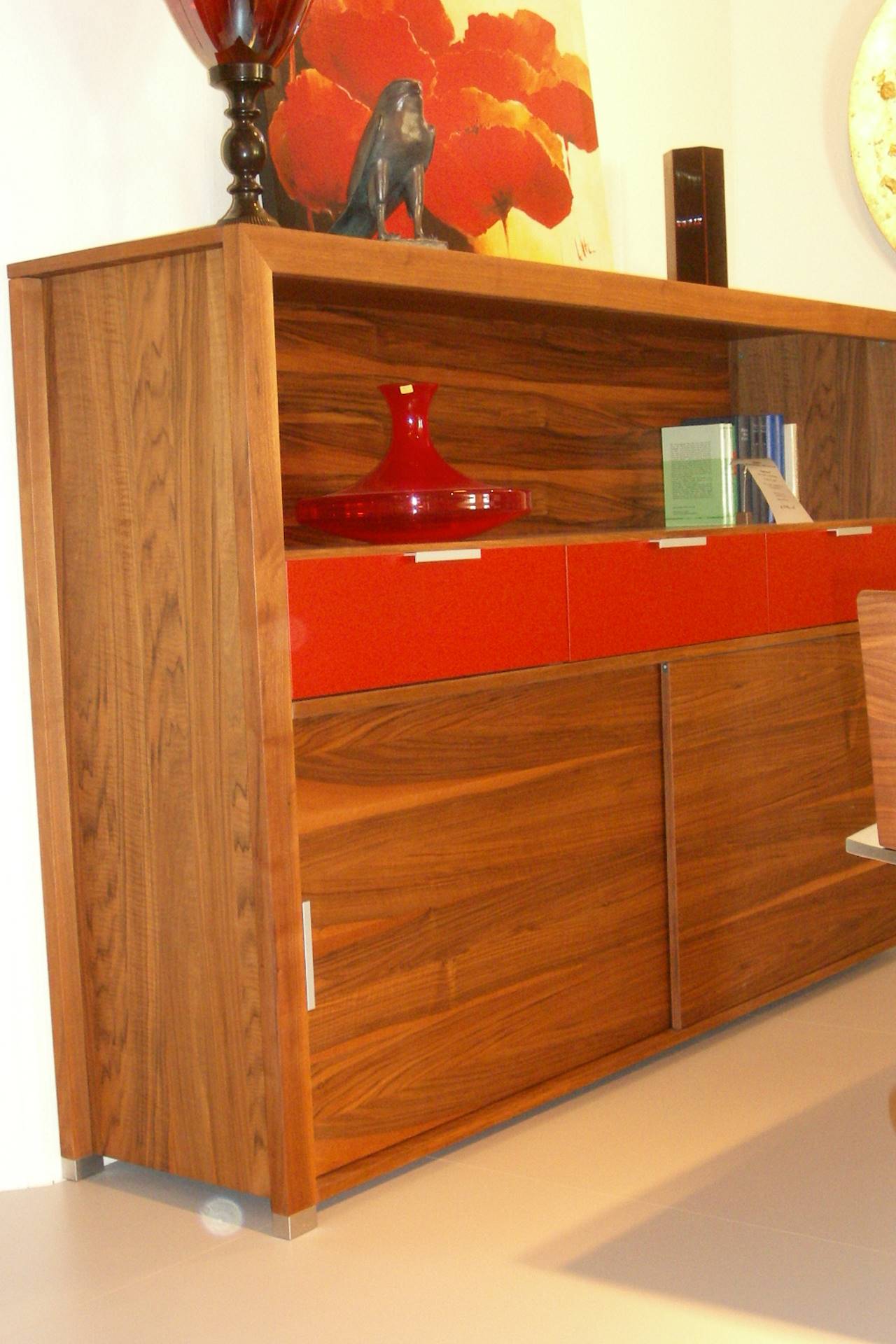 Schiebetüren TPL Nussbaum, Ladenfronten Metalllack rot, Griffe Alu